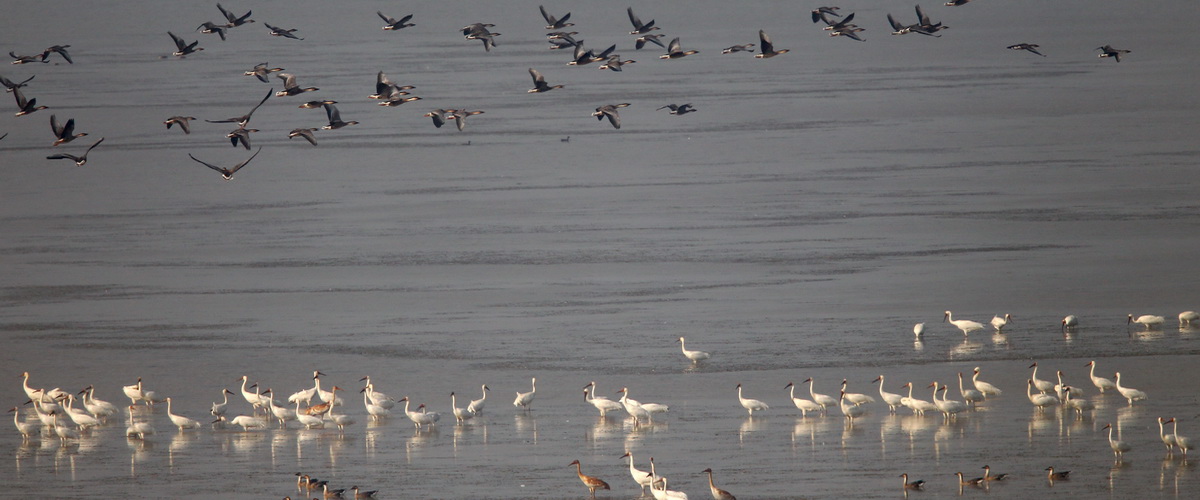 12. – 13. Tag: Ausgiebige Beobachtungen im 22.400 ha umfassenden Schutzgebiet am Poyang-See. Neben bis zu 2.500 Schneekranichen lassen sich hier u.a. weitere seltene Arten wie Schwarzschnabelstorch, Kranich, Mönchskranich und Weißnackenkranich sowie bis zu 50.000 Schwäne und Schwanengänse beobachten. Weitere spektakuläre Ansammlungen von überwinternden Gluckenten, Sichelenten, Baerenten, Fleckschnabelenten, Mandarinenten, Spießenten, Löffelenten, Schnatterenten und Pfeifenten können auf dem riesigen Seenkomplex beobachtet werden.