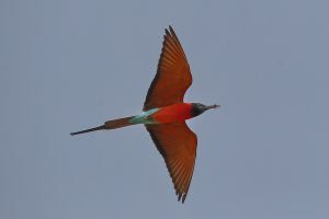 11. – 13.Tag: Wir erkunden drei Tage lang eine abwechslungsreiche Landschaft aus Miombo-Wald, immergrüner Vegetation, Seen, Grasland und Heide. Hier leben u.a. Gleitaar, Graubürzel-Singhabicht, Kehlstreif- und Salvadori-Bussard, Horus- und Haussegler, Natal Zwergfischer, Braunkopfliest, Weißstirn- und Zwergspint, Mohrensichelhopf, Sumpfastrild, Mosambikgirlitz, Graukopfsperling, Amethystglanzstar, Afrikaner- und Goldkuckuck, Fleckenibis, Laufhühnchen, Harlekinwachtel, Kapohreule, Coquif-, Rotkehl- und Finsch-Frankolin, Senegaltrappe, Temminckrennvogel, Neddicky, Baumklapper- und Rotnackenlerche, Kongoschmätzer, Schwarzkinnweber, Kongokuckuckswürger, Rosenbauch-Bartvogel, Schwarzkopf- und Rosenspint.