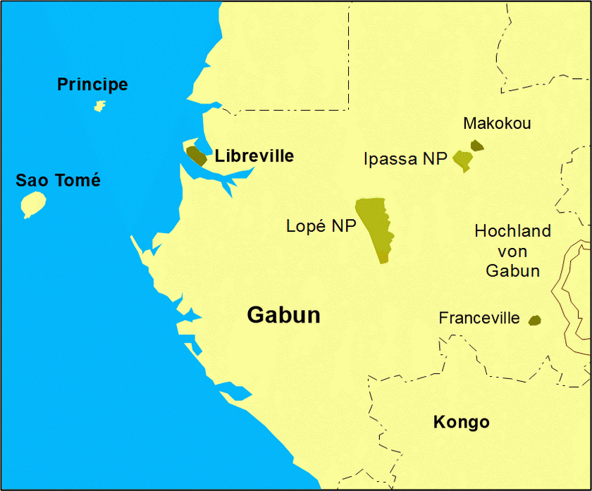 Auf einer 16tägigen Reise wollen wir die interessantesten Gebiete Gabuns, darunter das Lopé-Reservat, das Ipassao-Reservat und das Hochland besuchen mit Vorkommen des Flachland-Gorillas und vieler endemischer Vogelarten. Zu den Besonderheiten zählen z.B.: Ansell-Kuckuck, Waldnachtschwalbe, Finsch Frankolin, Loangoweber, Schwarzperl- und Schlichthauben-Perlhuhn, Langschwanzhabicht, Saphirspint, Trugschwalbe, Kongoschmätzer, Schlangenbussard, Rachelweber, Buntkopf-Felshüpfer.