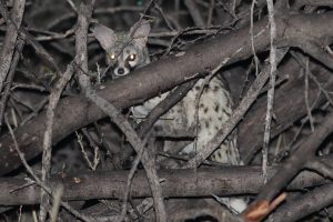 An nachtaktiven Vögeln sind zu erwarten, die Schleiereule, Blaßuhu, Fleckenuhu, Weißgesichtseule, Afrika-Zwergohreule und Perlkauz, deren gelbe Augen im Schein der Lampen gesucht werden müssen. Wenn wir rote reflektierende Punkte entdecken, sind dies meist die Augen von Ziegenmelker, Pfeifnachtschwalbe oder Rostwangen-Nachtschwalbe.
