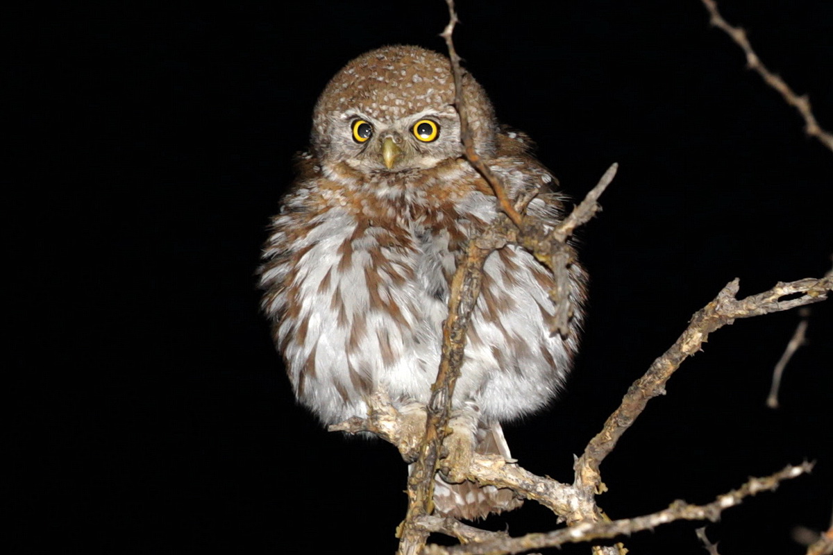 Nach dem Abendessen steht die erste Nachtexkursion auf dem Plan. Vielleicht entdecken wir gleich bei unserer ersten Nachtexkursion einen Blaßuhu, Perlkauz oder eine Rostwangen-Nachtschwalbe. Bestimmt werden wir auch Buschhase und Kaphase beobachten können. Mit etwas Glück entdecken finden wir die leuchtenden Augen einer Falbkatze, Braunen Hyäne oder von Löwe, Leopard und Gepard, die im Schein der Taschenlampe reflektieren.