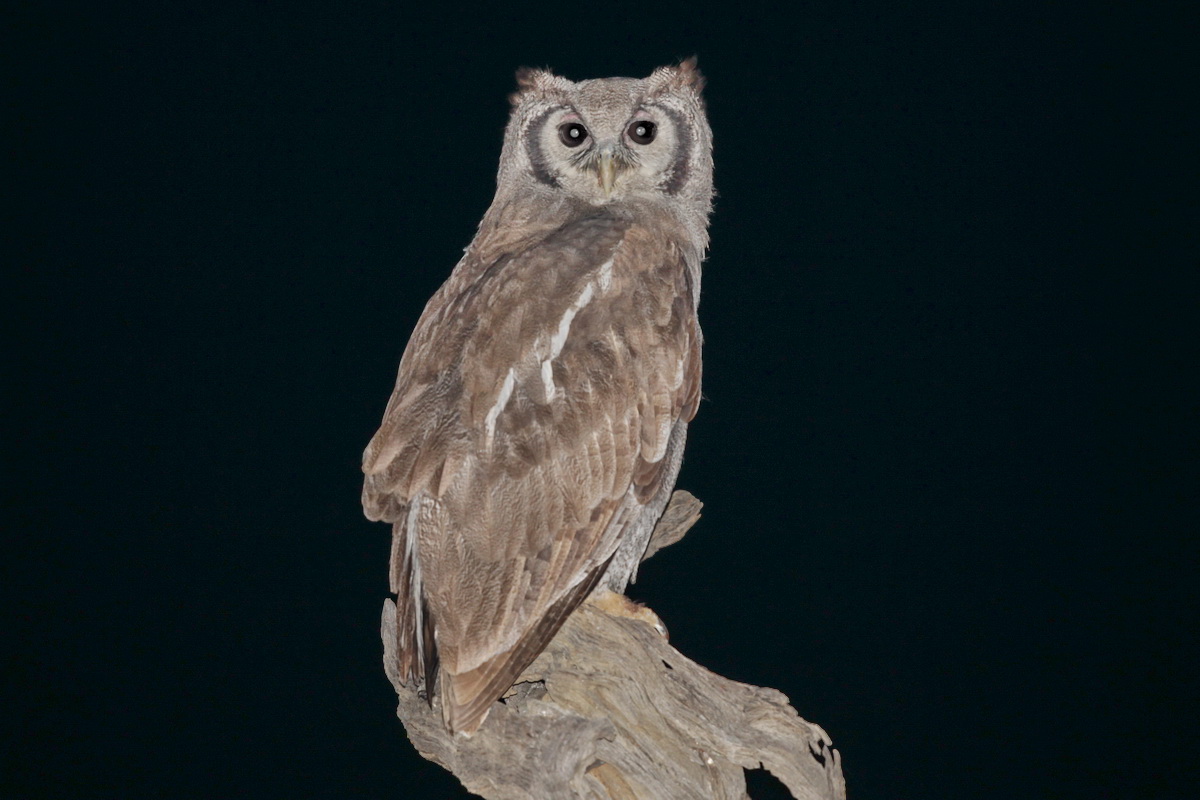 An nachtaktiven Vögeln sind zu erwarten, die Schleiereule, Blaßuhu, Fleckenuhu, Weißgesichtseule, Afrika-Zwergohreule und Perlkauz, deren gelbe Augen im Schein der Lampen gesucht werden müssen. Wenn wir rote reflektierende Punkte entdecken, sind dies meist die Augen von Ziegenmelker, Pfeifnachtschwalbe oder Rostwangen-Nachtschwalbe.