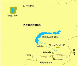 Wir besuchen das 30.000 qkm große Naturreservat Tengiz und Korgalzhyner Seen (erstes UNESCO-Weltnaturerbe Kasachstans) mit seinen zahlreichen großen und kleinen Steppenseen. Hier wurde ein Paradies inmitten einer riesigen Steppe erhalten.