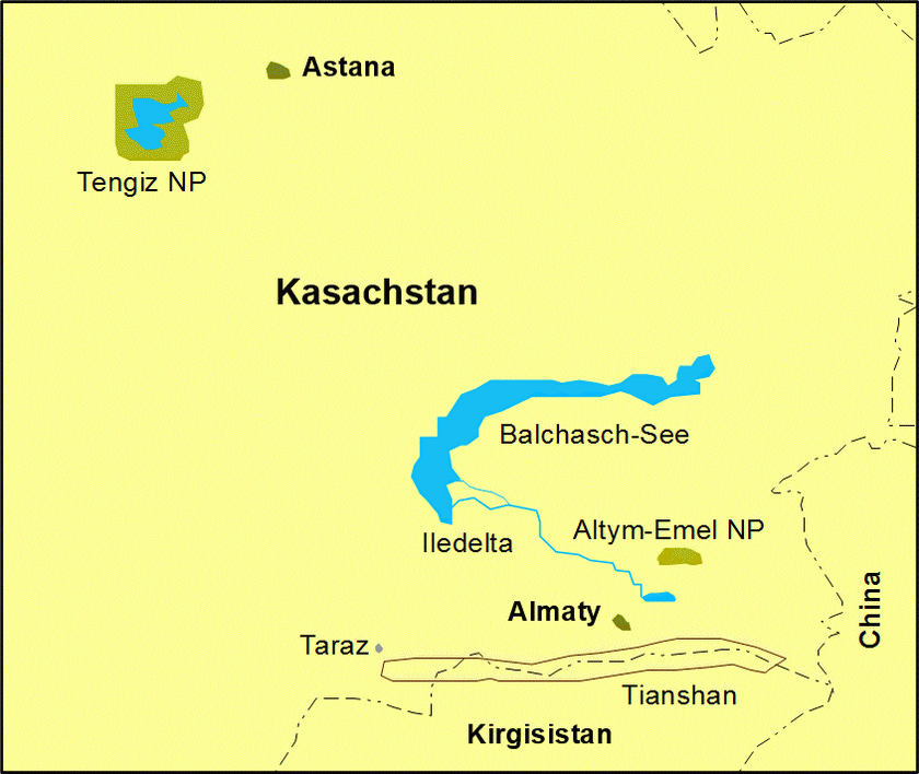 Kasachstan ist mit seinen 2,7 Millionen Quadratkilometern das neuntgrößte Land der Erde. Die Vielfalt der Lebensräume, von den Steppenseen bis zu den alpinen Matten im Tian Shan, versprechen für Ornithologen sehr interessante Vogelarten. Über 500 Arten wurden in den letzten Jahren nachgewiesen, u.a. Ibisschnabel, Himalaya Königshuhn, Bergrubinkehlchen, Riesenrotschwanz und einige schöne Gimpelarten.