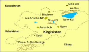 1. Tag: Hinflug: Abflug aus Mitteleuropa bis Istanbul (Flugzeit 2,5 bis 3 h) und Weiterflug nach Bischkek (Flugzeit 4 bis 5 h).