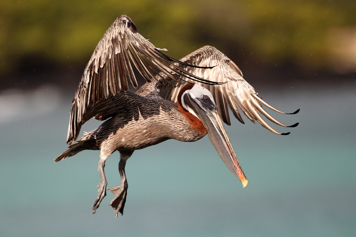 Anschließend Besuch des Vogelschutzgebietes Refugio de Aves. Praktisch mitten in der Stadt gelegen, findet sich hier eine Vielzahl von Vögeln ein; teils residente Arten, teils Überwinterer aus den nördlichen Gebieten des amerikanischen Kontinents. Es ist mit Rötelreiher, Dreifarbenreiher und Blaureiher, Kaliforniermöwe und Silbermöwen in allen Altersstadien, Raubseeschwalbe und Sumpfseeschwalbe zu rechnen, die oft, ebenso wie Fischadler, beim Jagen beobachtet werden können. Auch Königsseeschwalbe und Schmuckseeschwalbe können im Gebiet vorkommen. Unter den Langstreckenziehern finden sich Renntaucher, Bindentaucher und mehrere Entenarten wie Spießente, Amerikanische Pfeifente, Löffelente, Krickente, Zimtente sowie andere Zugvögel aus dem Norden. Nicht zu vergessen: Nashornpelikane, die oft in Gruppen auf Fischjagd gehen. (F)