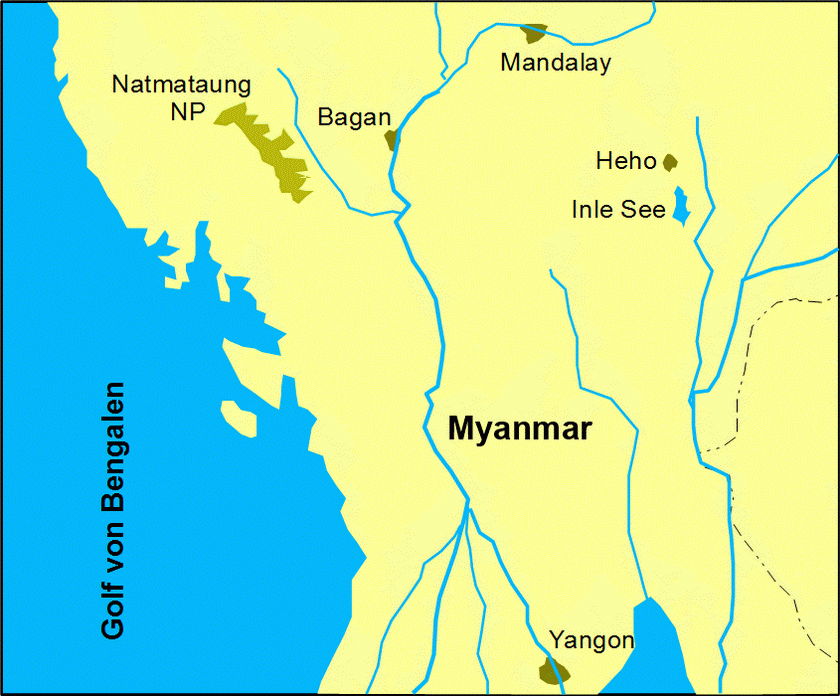 Nahezu doppelt so groß wie die Bundesrepublik erstreckt sich Myanmar (das ehemalige Birma) vom östlichen Himalaya im Norden knapp 2.000 km bis zum malaiischen Tieflandregenwald im Süden. Es hat die artenreichste Avifauna Südost-Asiens, wurde aber bisher ornithologisch kaum bereist. Fast 40 Jahre war das Land von der Außenwelt isoliert und hat sich in dieser Zeit seine Ursprünglichkeit sowohl in Bezug auf Kultur, als auch hinsichtlich der Vogelwelt weitgehend erhalten. Manche Regionen sind bis heute nicht zugänglich, aber seit ein paar Jahren ist es möglich, einige, speziell vogelkundlich interessante Gebiete nach fast siebzig Jahren wieder zu bereisen. Mit dem 3.000 m hohen Mt. Victoria im Westen, der trockenen Tiefebene Zentralmyanmars und dem Inle-See im östlichen Shan-Hochland werden wir drei sehr unterschiedliche Gebiete besuchen und damit einen guten Überblick über die Avifauna dieses riesigen Landes erhalten. Mit etwas Glück sollte es uns gelingen, über 300 der 1.000 für Myanmar nachgewiesenen Vogelarten zu sehen, darunter vier der fünf Endemiten sowie eine Vielzahl von Arten, die in den besser erschlossenen Nachbarländern nur sehr schwer zu sehen sind.
