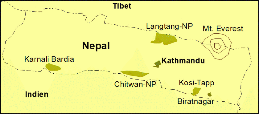 1. – 2. Tag: Flug von Deutschland nach Kathmandu, der nepalesischen Hauptstadt (1.300 m). Nach dem Transfer zum Hotel werden wir die ersten Beobachtungen in der Nähe des Hotels machen.