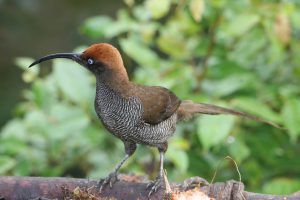 13. – 14. Tag: Wir erkunden die Umgebung der Lodge. Das Gebiet gilt als das beste Beobachtungsgebiet für Bergregenwaldvögel des Landes. Immer wieder werden hier Schwarzmantelhabicht, Nymphenralle, Papualori, Braunscheitelpapagei, Bergsalangane, Bergwaldflöter, Papua-Sericornis, Zweiphasen-Fächerschwanz, Pittadrossel, Blutrückenschnäpper, Lappendickkopf, Prachtkleiber, Reichenow-Honigfresser, Goldstreif-Honigfresser, Rosenberg-Honigfresser, Gelbbauch-Beerenpicker, Schopfbeerenfresser, Bergamadine, Dreifarben-Papageiamadine, Bergpeltops, Goldhaubengärtner, Glanzflöter, Kurzschwanz-Paradigalla, Stephanie-Astrapia, Schmalschwanz-Sichelhopf, Zimtbrust-Honigfresser, Dreigang-Laubenvogel, Wimpelträger, Kragenparadiesvoge, Loriaparadiesvoge und Blaunacken-Paradiesvogel beobachtet.