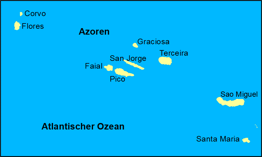 Wenigen als Reiseziel bekannt und vom Massentourismus verschont ist der Vorposten Europas mitten im Atlantik zwischen Nordamerika und Europa. Kaum 800 Seemeilen von Lissabon entfernt liegt der Azoren-Archipel, der von 9 Inseln, von denen wir 4 besuchen werden, mit einer Gesamtfläche von 2335 qkm gebildet wird. Das Klima ist gemäßigt (Jahresmittel 17°), und die Wassertemperaturen liegen um die 20°. Landschaftlich bietet die immergrüne Insel dem Besucher einige phantastische Gebiete: Erloschene oder schlafende Vulkane mit herrlichen Seen und senkrecht zum Meer abfallenden Kraterwänden; schroffe Felsformationen an der Küste und kleine idyllische Sandstrände; Geysire und heiße Quellen, in denen einheimische Bauern Gemüse garen und dies an Touristen verkaufen; Berge und Täler mit üppiger Vegetation, die in Europa ihresgleichen suchen. Die Straßenränder sind gesäumt von kilometerlangen Hortensienhecken, die bis zu 2,5 Meter hoch werden und Steilhängen, an denen sich Laternenblumen aus dem Himalaja mit ihrem weithin gelb leuchtenden 60 cm hohen Blütenstand bis zur Straße hin ziehen. Ornithologische Besonderheiten sind Gelbschnabel-Sturmtaucher und der vom Aussterben bedrohte Azorengimpel.