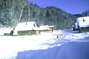 8. – 11. Tag: Ganztägige Exkursionen mit Lkw, Schneemobil und Skiern in die Primorskij-Taiga. Auch hier unter orts- und fachkundiger Begleitung auf der Spur des Tigers und anderer Säuger Ussuriens. Auf unseren Wanderungen konnten wir neben verschiedenen Säugetieren, Meisengimpel und das Sichelhuhn beobachten. Übernachtung in einfachen Taiga-Hütten.