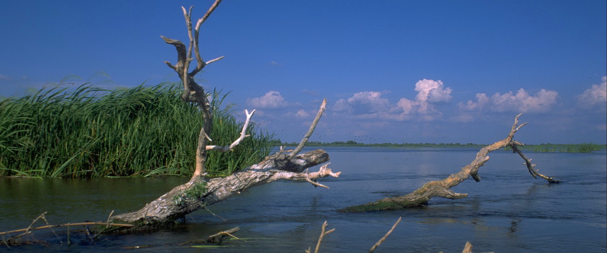 – Fahrten durch die von Weichholzauen gesäumten größeren Flußarme und Kanäle. Dort sehr zahlreich u.a. Nachtreiher, Zwergdommel, Kormoran, Zwergscharbe, Seeadler, Beutelmeisen und Bartmeisen, regelmäßig auch Kolbenenten, Moorenten und Knäkenten sowie Zwergsäger. Beobachtungen an Seeadlerhorsten und Fischadlerhorsten und an einer großen gemischten Kormorankolonie mit mehreren tausend Brutpaaren.