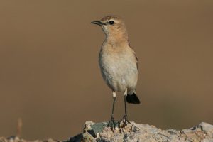 13. Tag: Exkursionen am Großen Bogdo-Berg und am Baskuntschak-See. Hier u.a. sehr häufig Nonnensteinschmätzer und Weißflügellerche, ferner Zwergtrappe, Jungfernkranich, Steppenweihe, Kaiseradler, Steppenadler- und Adlerbussardhorste, Rötelfalke, Saiga-Antilopen. Sehr interessante Flora, u.a. Tulpen und zahlreiche Endemiten, die nur hier vorkommen. Im September große, spektakuläre Ansammlungen von Steppenadlern, z.B. Anfang Sept. bis zu 80 Ex. in der näheren Umgebung des Berges, sowie sehr guter Kleinvogelzug im Mai.