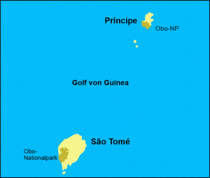 Der ‘vergessene’ Inselstaat São Tomé/Príncipe liegt ca. 200 km vor der Küste Gabuns im Golf von Guinea. São Tomé umfasst 859 qkm, hat eine Nord-Südausdehnung von 48 km und eine West-Ostausdehnung von 30 km. Der höchste Berg ist der 2.024 m hohe Pico de São Tomé. An einigen Stellen dieser einzigartigen Vulkanlandschaft regnet es bis 5.000 mm/Jahr, daher ist Regenbekleidung und festes Schuhwerk bei unseren Touren immer angesagt.