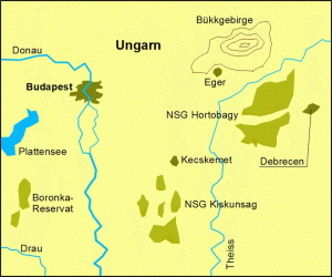 Danach zur weltberühmten Hortobagy Pußta, mit ihren zahlreichen Sümpfen, Fischteichen, Flüssen, Röhrichtbeständen, den Akazienwäldern mit Rotfußfalkenkolonien und der weiten Pußta, die das Land so bekannt gemacht hat. Über 200 Vogelarten werden jedes Jahr hier nachgewiesen. Brutvögel sind u.a. Großtrappen, Rotfußfalke, Bart- und Beutelmeisen, Blau-, Schwarz- und Braunkehlchen. Dazu kommen ca. 2.000 Kraniche und etliche Limikolen auf dem Zug oder als Übersommerer.