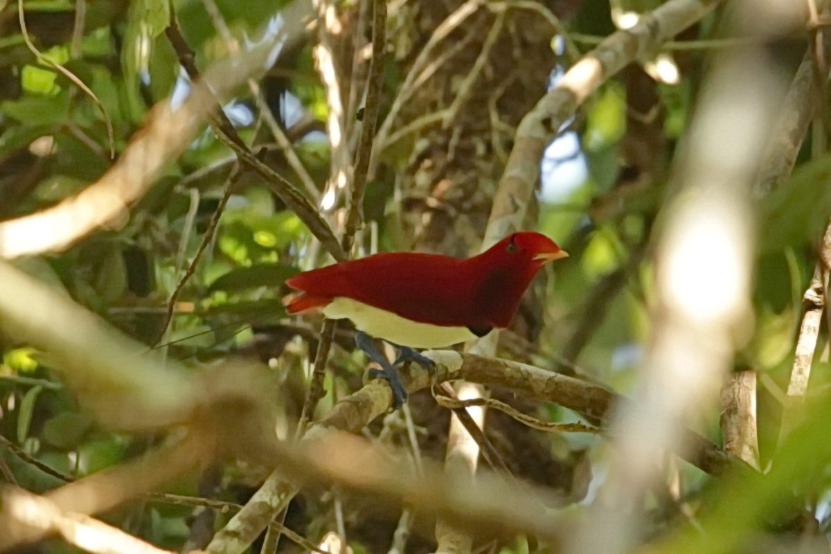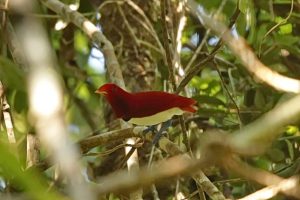 Am Nachmittag besuchen wir bei einem Waldspaziergang einen Balzbaum des kleinsten Paradiesvogels. Als A. R. Wallace im späten 19. Jahrhundert das erste Exemplar von einem seiner Jäger gebracht bekam, sagte er „eine üppige Verschwendung von Schönheit“ zu dem Königsparadiesvogel, von dem vorher nur Einzelteile und Federn bekannt waren. Weitere Arten sind hier Papuaadler, Molukkenadler, Papuazwergadler, Borstenkopf, Goldstirnpapageichen, Weißbürzellori, Grünnacken-Zwergpapagei, Rostnacken-Staffelschwanz, Maronenpirol und Prachtparadiesvogel.